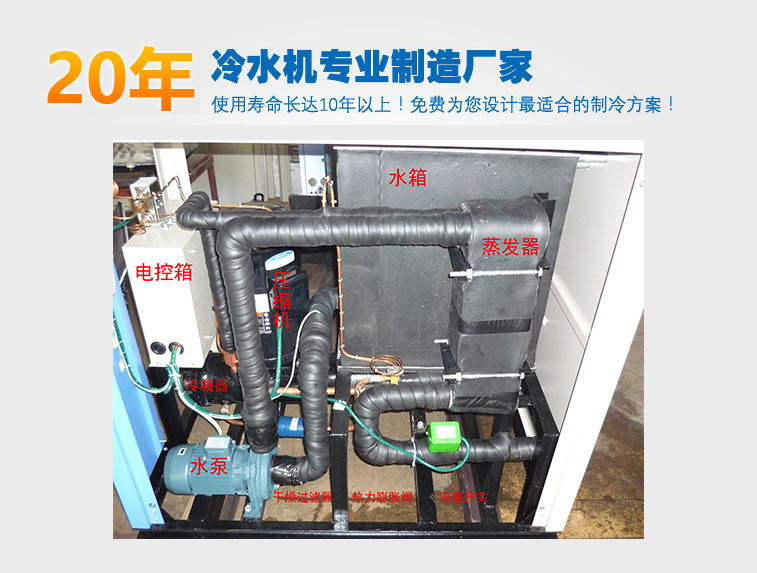 2) 冷水機(jī)采用歐美日進(jìn)口全封閉壓縮機(jī),內(nèi)置安全保護(hù),噪音低,高效節(jié)能,以增加設(shè)備的使用壽命。